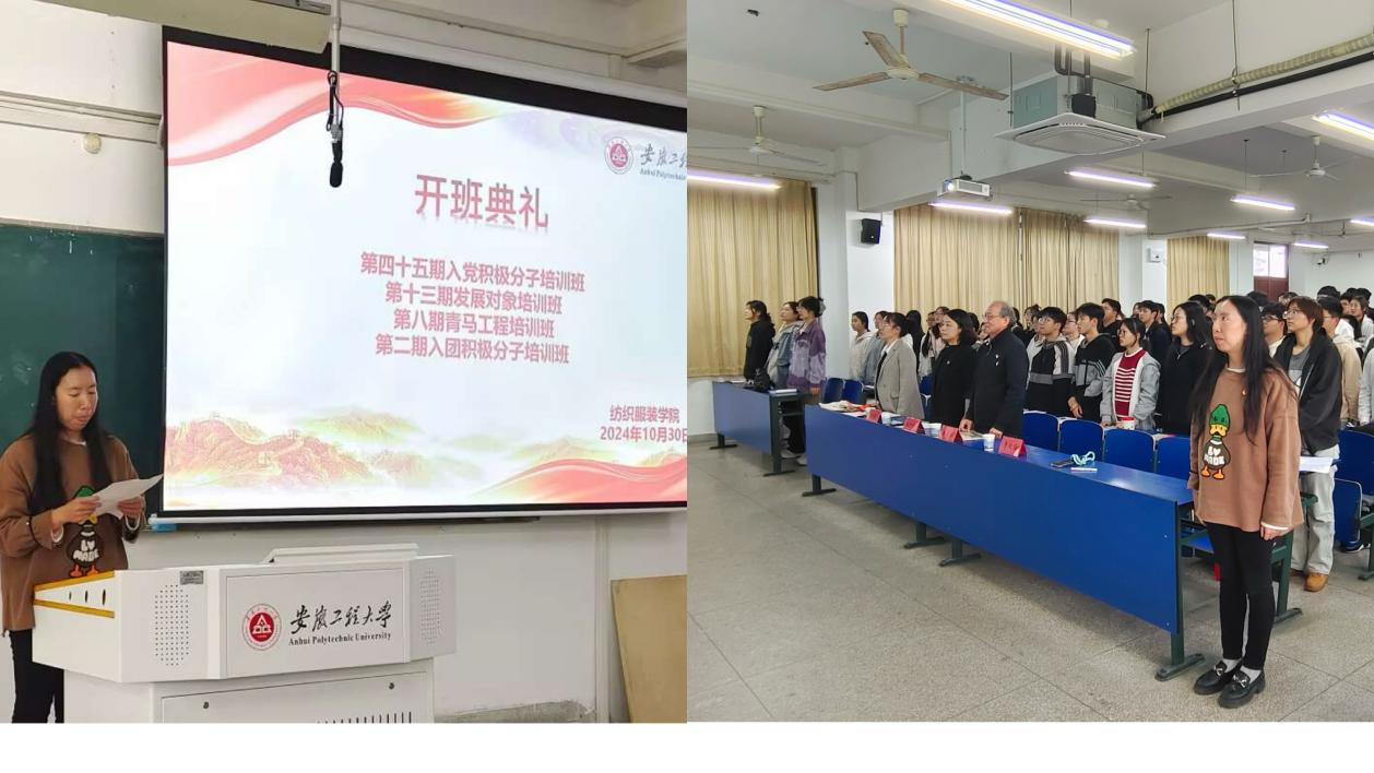 开班典礼在庄严的国歌声中拉开序幕。接着,发展对象培训班学员非织造221柯烨同学、青马班学员服工231陈俊汶同学依次上台发言。