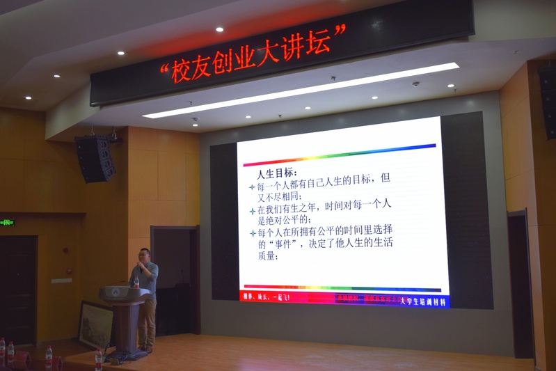 黄宏宏校友从“昨天、今天、明天”对青春芳华进行追忆,从工作初期的卧薪尝胆与面对人生选择时的迷茫无助,到创业时的艰辛苦楚与事业有成后的不懈坚守,他表示对于管理工程学院给与自己的一切,至今都发自内心的感激。他用自己丰富的生活阅历以及富含哲理的故事生动地告诉学弟学妹们要有声有色的工作,有情有义的交往,有滋有味的生活。此外,黄宏宏校友谈到,成功应具备四个条件“知识、心态、技巧、习惯”,我们每个人都应该清晰地为自己设置人生目标,否则即使有很多内外部条件也不一定能成功。