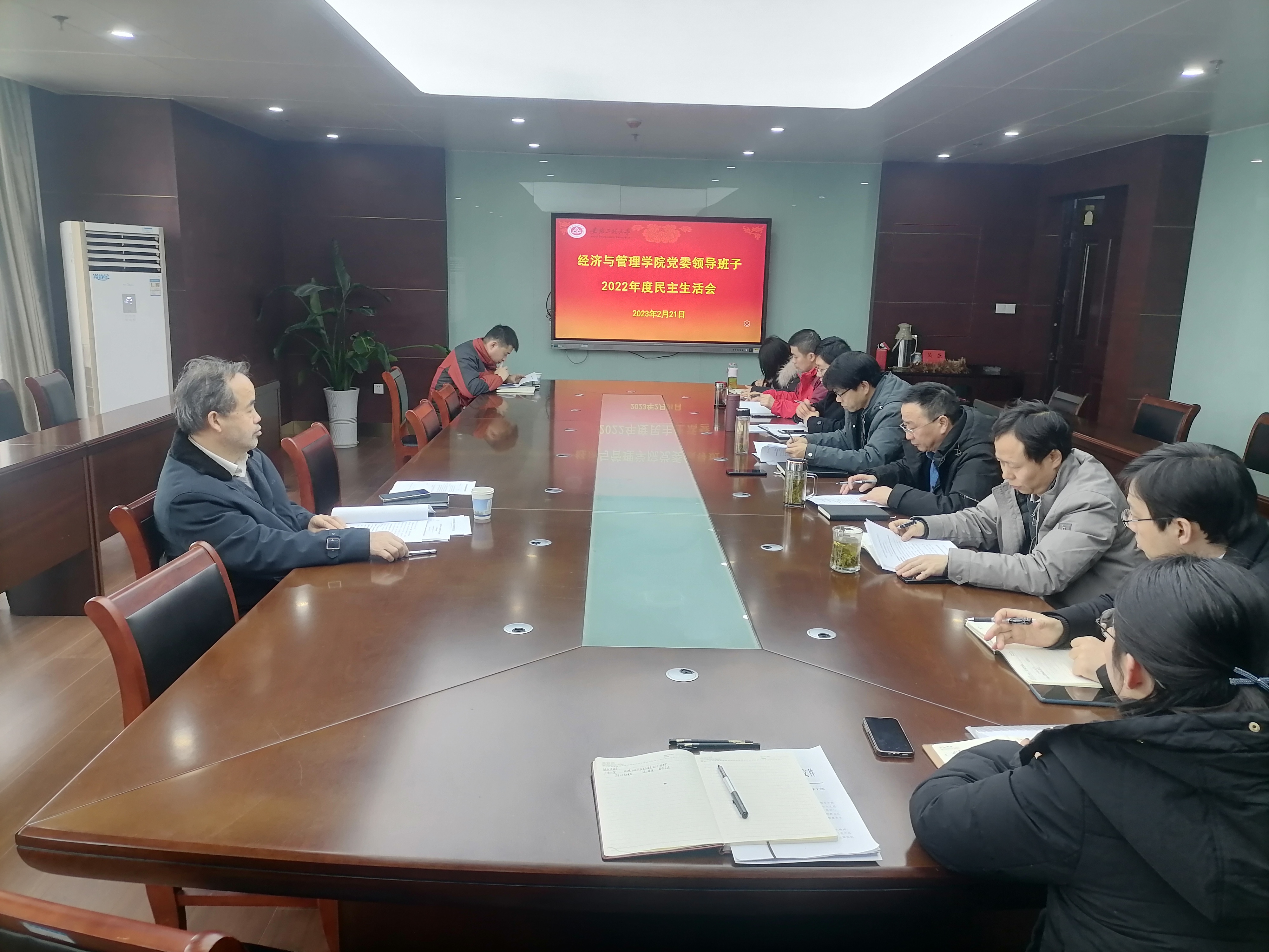 2月21日,经济与管理学院党委领导班子2022年度民主生活会在C818会议室召开,校第二督导组成员、校纪委委员、机械工程学院党委书记伊长文到会指导,学院领导班子成员、党委委员参加会议。会议由学院党委书记水心宝主持。