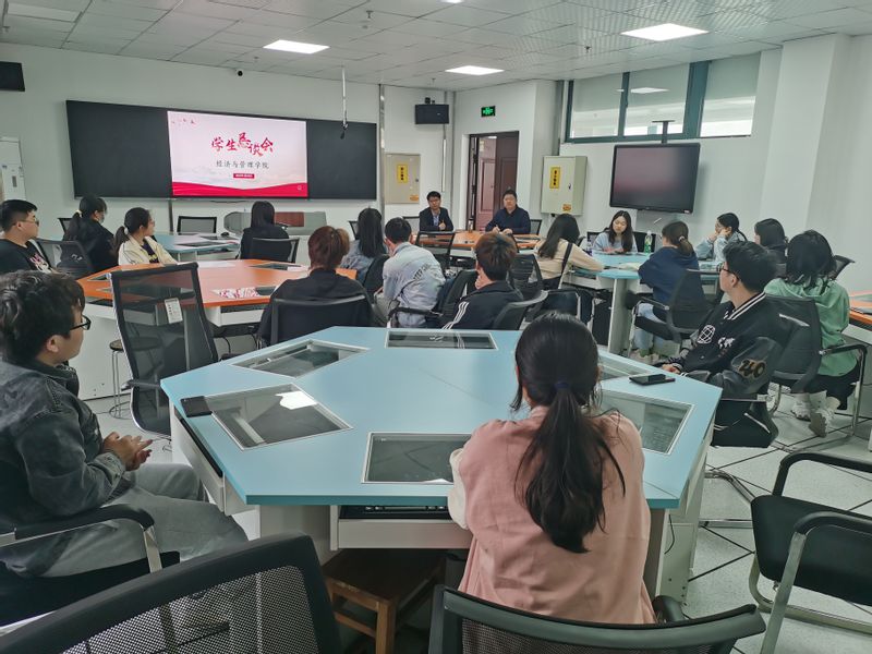 4月28日下午,经济与管理学院在C924召开学生恳谈会,全面了解和解答学生在日常学习生活中遇到的困难。学院党委书记水心宝、党委副书记刘海涛、团委书记赵恒梅,及各班学生代表参加了此次恳谈会。