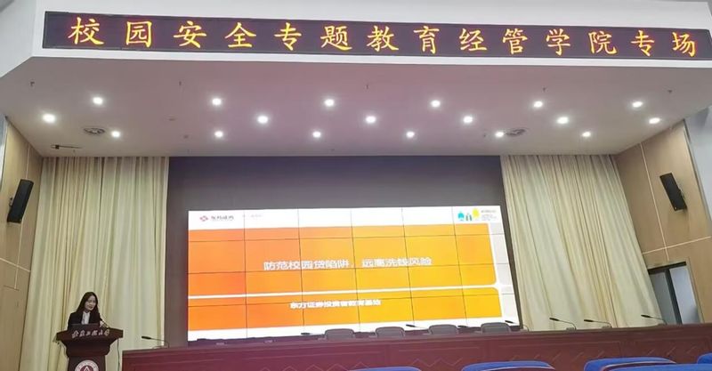在最后的投资者教育进百校活动环节,芜湖东方证券投教专员田天赐采用“真实案例+法律解读+实操建议”相结合的方式,深度剖析了校园贷的四大风险,呼吁远离洗钱犯罪,守护校园净土。她针对“无抵押、秒到账,利息低”,“分期购,零首付、无压力”等典型话术,运用真实案例揭露其背后陷阱,并给出了具体防范建议:警惕违法话术、坚持理性消费并优先选择勤工助学、遇到骚扰留存证据并告知家长和学校、主动向同学科普互助。在互动中,田天赐围绕“校园贷危害”“日常广告辨别技巧”等话题与学子们展开有奖问答环节,现场学生积极提问、踊跃发言,氛围热烈。