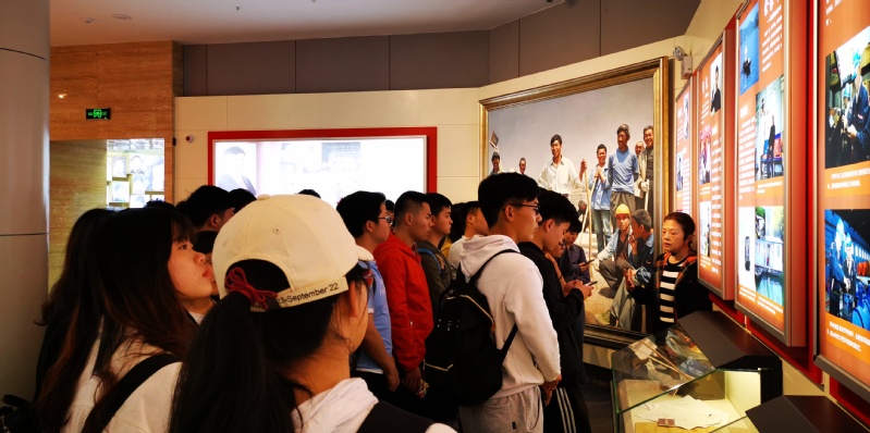 实践教学的第一站:安徽好人馆。安徽好人馆是全国首个省级好人馆,设有崇德向善、见贤思齐、春风化雨三个部分,以图片、实物、视频等等多种形式,生动形象的展现着安徽好人的好人事迹。副馆长江山亲自为同学们讲解好人好事,她说,截至2019年3月底,中国好人榜上好人12737名,安徽1300人入选,占全国总人数的1/10,连续11年位居全国第一。这是安徽人的骄傲和自豪。好人官东,沈浩,张劼,板车女孩……这些好人们的事迹像走马灯一样在同学们的眼前掠过,真实、平凡却又无比的动人心魄。