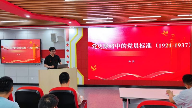 孙波作为了题为“党史脉络中的党员标准(1921-1937)”的报告。报告按照党史脉络,介绍了党员标准与入党条件、发展党员的政策及方法、入党誓词的变化以及入党志愿书的式样和内容。他以伟大建党精神作为结语,希望与会师生不忘初心,牢记使命,继续弘扬光荣传统,赓续红色血脉。