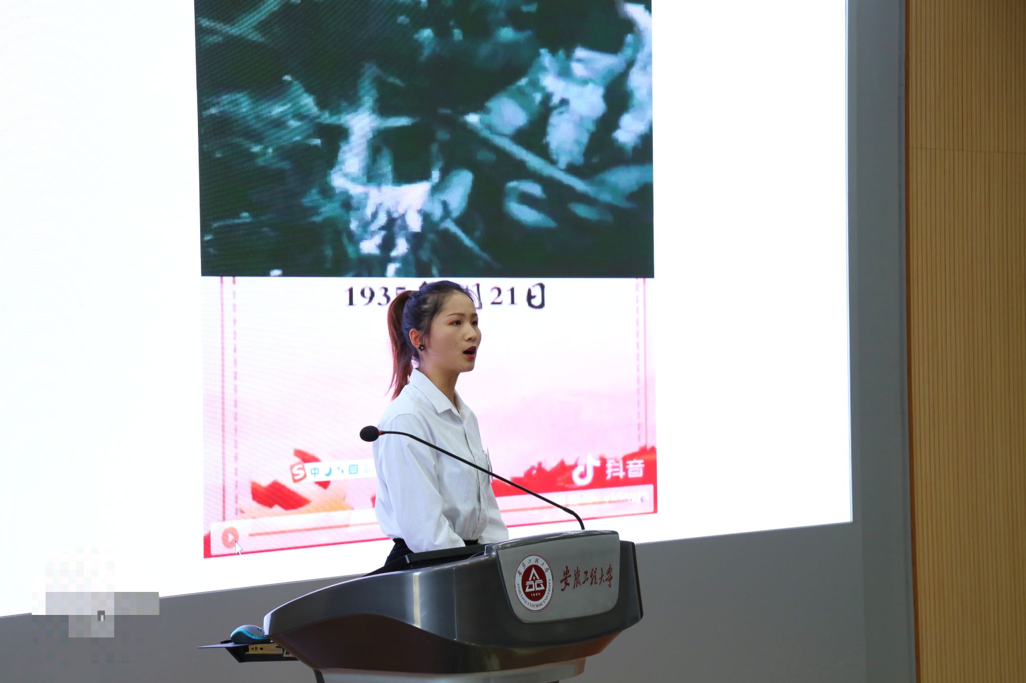 经过院级角逐,最终体育学院派出表演181班郑晶晶同学参加本次大赛,用郑晶晶同学的话来说“参加本次大赛的初心是要用自己内心的情感,渲染更多的人,继续弘扬伟大的民族精神”。为此在备赛阶段,她认真查阅相关资料,积极请教专业老师,不断地修改宣讲稿,斟酌用词。在比赛的前一天晚上,她把寝室里面的玩偶摆成一排作为自己的观众来模拟比赛时的情景。正因为有了前期充足的准备,在正式比赛时,郑晶晶同学才有较为平稳、放松的心态。
