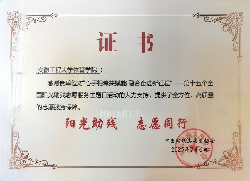 7月5日至7日,由中国助残志愿者协会、芜湖市人民政府主办的“心手相牵共赋能 融合奋进新征程”第十五个全国阳光助残志愿服务主题日活动在芜湖隆重举行。我校作为第十五批(第三期)全国阳光助残志愿服务基地建设单位受邀参会并授牌。