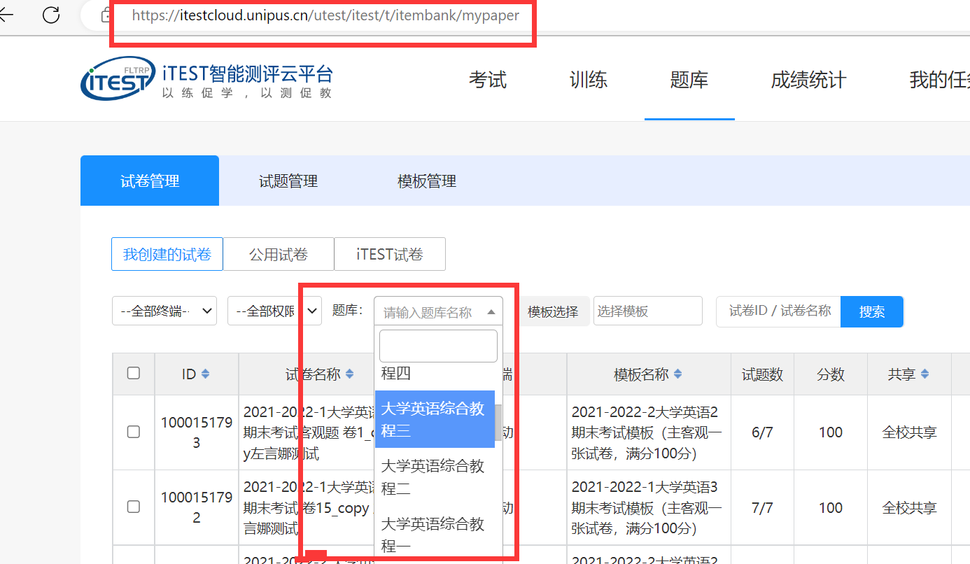 第三,为了进一步推动无纸化考试,在iTEST平台建设了《大学英语1/2/3/4》册题库。为月考、期末考试和平时作业提供了有力支撑。