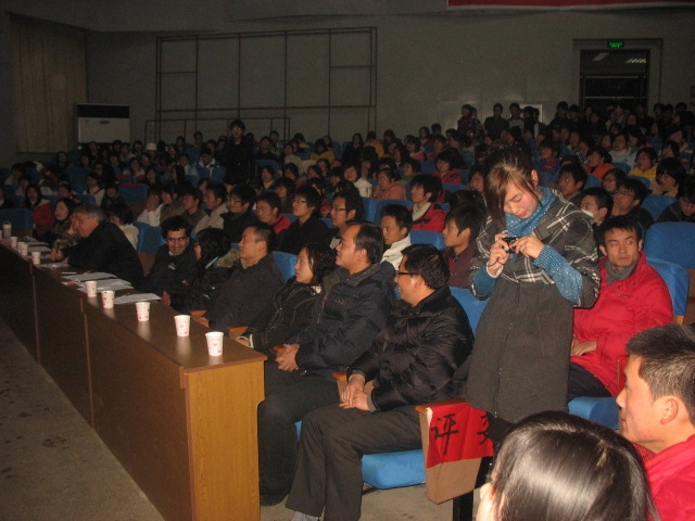 12107:00,由外语系和机电学院团总支、学生会共同主办的2009年英语电影配音大赛决赛在学术报告厅举行。本次大赛吸引了来自外语系英语专业、机电学院英语专业及“Lemon Tree”外文社、“Langue Tower”翻译社、EYE口语协会和T-CET驿站等协会的全院广大英语爱好者,共有28支队参赛,经选拔有15支队进入决赛。决赛现场座无虚席,气氛热烈。外语系骨干教师和外教应邀担任大赛评委。